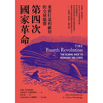為了說明現代國家有必要進行第四次的革命,本書帶領讀者回溯前三.五次的革命歷史:第一次是為了維持法律與秩序所誕生的民族國家;第二次是讓個人免於專制壓迫的自由主義國家;第三次是提供給每個公民最低生活保障的福利國家;第三次半則是為了讓過於膨脹的現代政府減肥但結果卻失敗的新自由主義國家。
